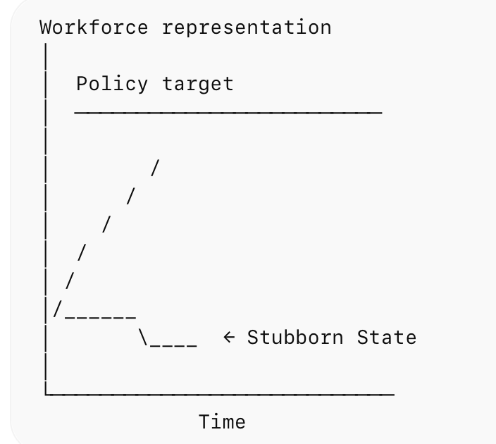 Small differences in recruitment ratios, promotion rates, and attrition assumptions can produce large structural effects over time.